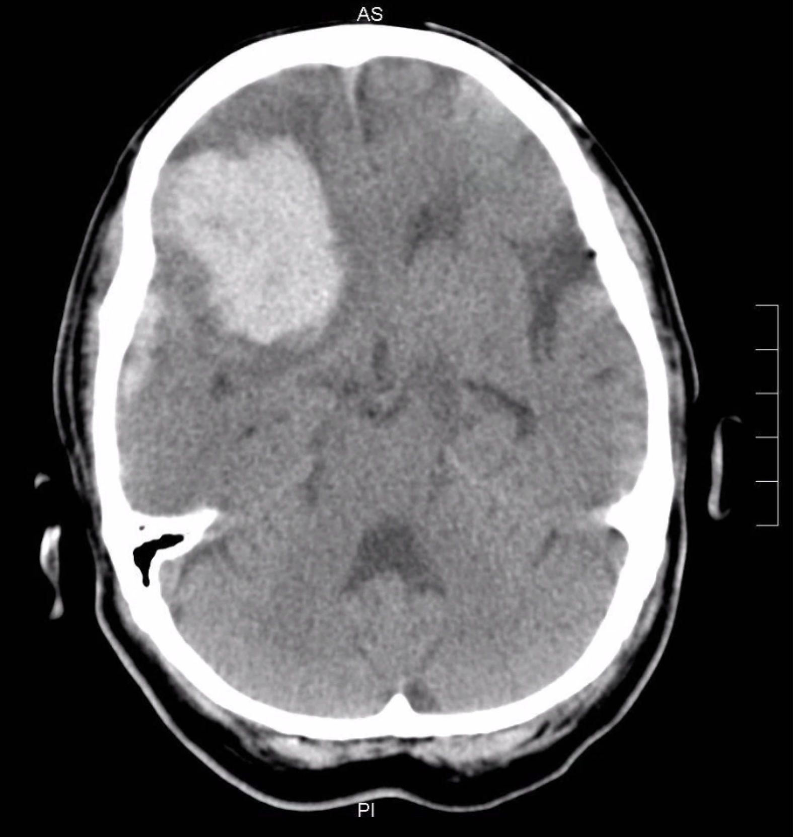 Left hemiplegia d/t right frontal ICH. SDH. 2020.10.30.