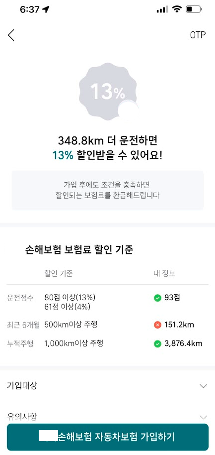 자동차 보험 T map 안전 점수 할인 혜택을 이용해서 가입했다.