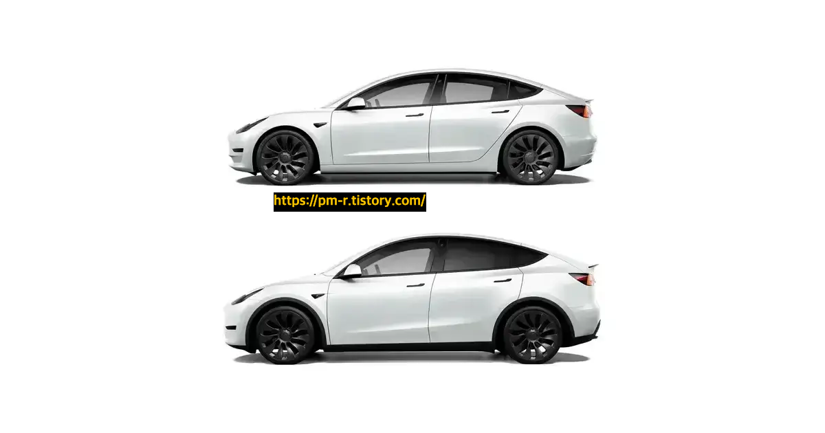 모델 Y와 3의 옆면 비교입니다.
