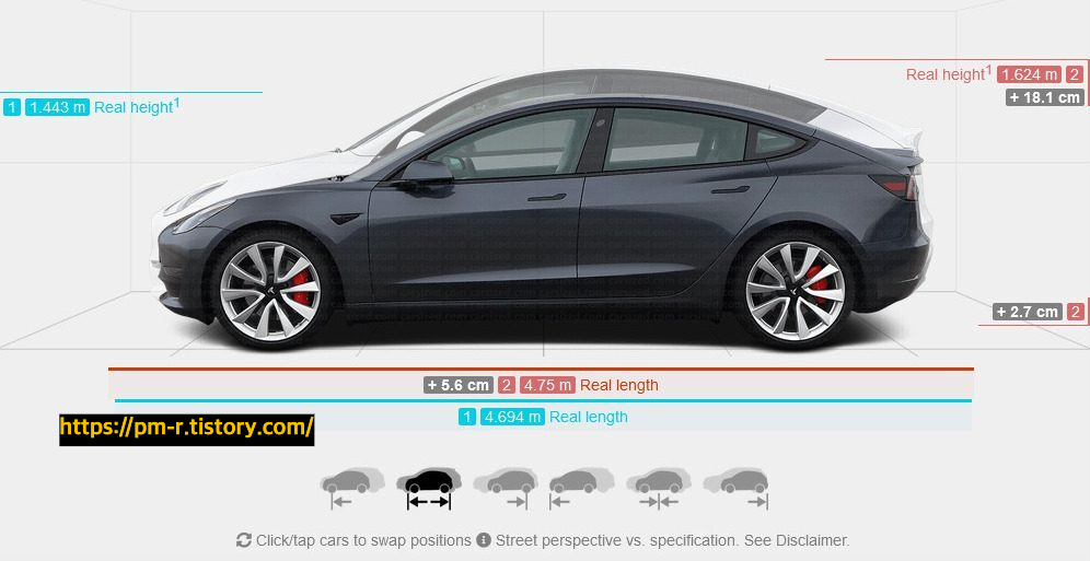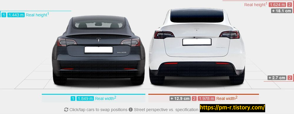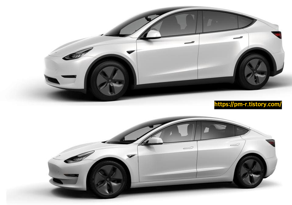 그리고 모델 Y와 3의 크기 비교입니다.
