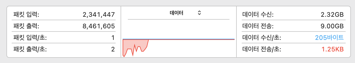 실제 연결 속도를 확인하려면 대용량 파일을 직접 복사시킨 다음 '활성 상태 보기' 앱 > 네트워크로 전송 상태를 확인할 수 있다.